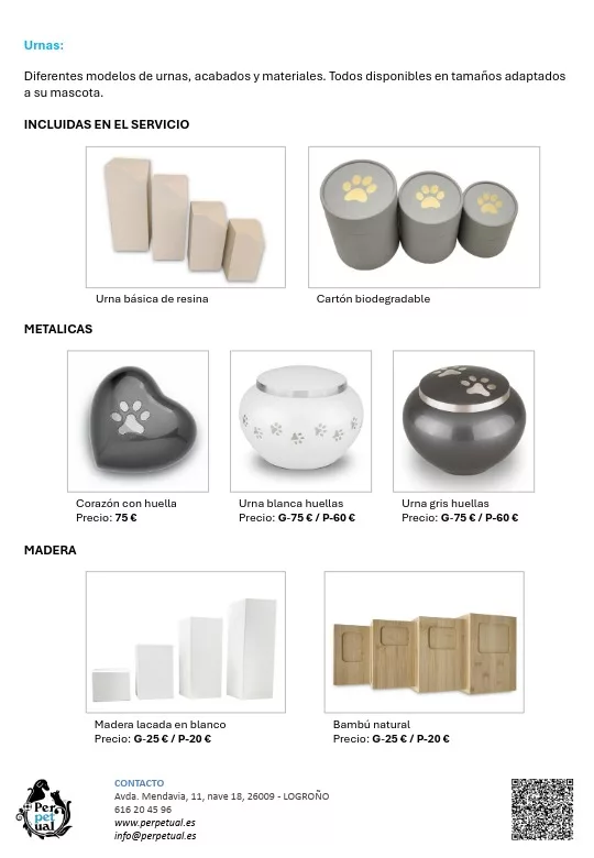 En Perpetual Crematorio de Mascotas tenemos a vuestra disposición un catálogo de urnas para que escojáis la más adecuada. ¡Podéis consultarnos sin compromiso si tenéis cualquier duda!