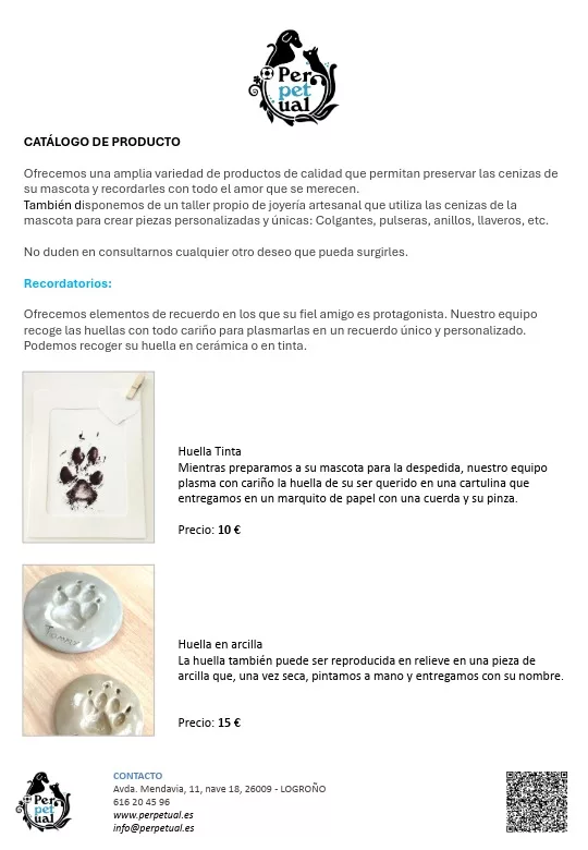 En Perpetual Crematorio de Mascotas, además de acompañaros durante la despedida de vuestra mascota, os ofrecemos la posibilidad de recordarla para siempre con su huella en tinta o en arcilla.